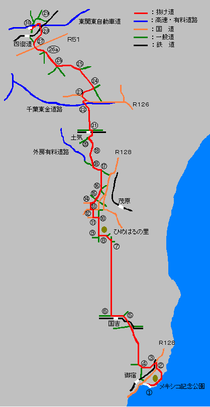 国吉駅を過ぎ、大きな交差点を右折し広域農道へ (しばらく道なり直進)