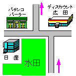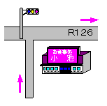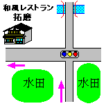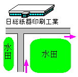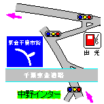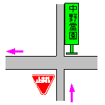 中野インターの先、道路案内標識を目印に右へ、その先T字路を左へ