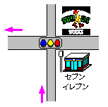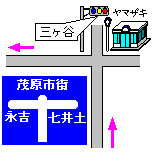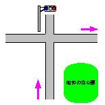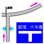 T字路突き当りを左折し、駅前のトの字交差点を右へ