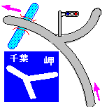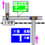 東関東自動車道の高架下のX字路を左側へ抜ける