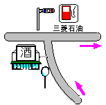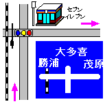 国道51号線を横断し、緩い左カーブコスモ石油を右折 (その先カーブ多し注意)