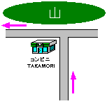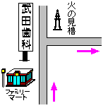ファミリーマートの先「武田歯科」の看板を目印に右折