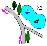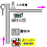 スーパー「サカモト」を過ぎ、火の見やぐらを目印に右へ