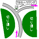 TBSハウジングの看板を目印に斜め右へ (最初は狭いが直ぐに広くなるので心配はいらない)