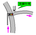 踏み切りを渡り、高速の下をくぐり抜け、直ぐ左折