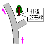 笠石林道への分岐点を直進する。