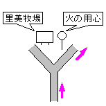 里美牧場入口のY字路を右側へ進む。