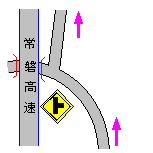 有料道路出口付近の急カーブをゆっくりと曲がり、