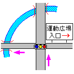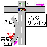 一般道との合流部分は、一時停止です。 注意して下さい。