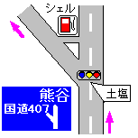料金所を抜け、一旦熊谷方面へ直進し、川越方向へ左折する。