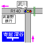 荒川を渡り、700メートルほど先のT字路を左折し、国道140号線を西へ進む。