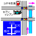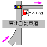 東北自動車道の高架をぬけ、直ぐの交差点を右折する。