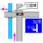 道路案内に従い、交差点を左折し、三国橋を渡る。