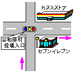 ネーブルパークへは、総和市街方向へ左折し、T字路突き当たりを右折する。