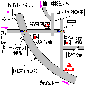 | アクセス | ドライブルートのコマ地図10番を右折し、秩父へ向かいます。 牧丘付近の地図 秩父付近の地図 (駐車場から本堂まで約10分くらいです。) |