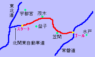 ・国際規格のサーキットで本物のレーシングカーに乗ってみませんか。 テクがなくても免許がなくても、予約もなしで大丈夫です さあ行こう。 自分で運転するコースの他に、インストラクターの運転する、マシンに同 乗するコースもあるので、運転に自身がなくても大丈夫です。 プロのテクニックに驚愕しよう。 ・北関東自動車道の宇都宮上三川(うつのみやかみのかわ)ICからスター トし、茂木・笠間を周り、常磐自動車道の水戸ICへゴールします。 ・ドライブコースの走行距離 : 約 72キロメートル