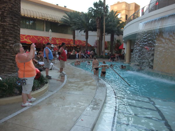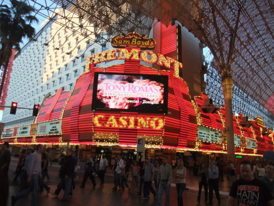 そばのフリーモント・ストリートのアーケードをビール片手に散策。カジノを見学し体験。