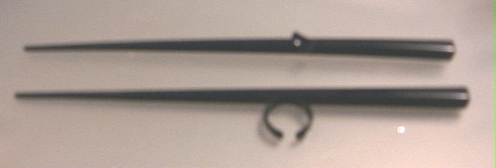 す。箸をもつとき、薬指の支えが崩れたり、上の箸が下のそれと交差したり、余分な力が加わったりしました。そんなわけで、慣れるまでの間、左の写真にあるような「矯正箸」なるモノを買い求め、暇なときに練習しました(もちろん、これを使って食べても良いのですが、私はこれを専ら練習用と割り切って使いました)。ちなみに上にある突起は、人差指の置き場所、下の輪は薬指の関節を安定させる箇所です(税込みで630円でした)。
