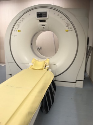これまでのオープン型MRI装置から機種変更しています。従来より、より詳しく、より早い検査が可能となっています。おおよその検査時間は約10分前後です。尚、緊張される方には映像や音楽を視聴いただきながら撮影しています。また、お好みの音楽が良いようでしたら、ご持参いただいてよいのでお気軽にお申し付けください。