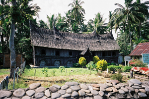 とか宿まで帰った。宿の男マッチャンに「赤道に行きたいのだが」と相談すると、「じゃあ俺が仕事終わったら連れてってやる」ということになり、赤道を越えた彼の田舎まで行 くことになった。仕事が終わり、彼のベスパに2人で跨った。 運転はうまいのだが、よくべスパの調子が悪くなる・・・雨が降る中、池のような水溜りをよけつつ、まずは彼の母親のうちへ。お母さんが豪勢な手料理を出 してくれた(当然お金を払った)。周りは水田。雨も上がり、月明かりの空を雲が流れる。蛍がちらほら飛んでいる。 お母さんのうちを後にし、マッチャンのワイフの家へ向かう。3時間程走っただろうかワイフの家に到着。子供がテレビを見ていた。日本のゴレンジャーみた いなやつだ。「われわれのボスに紹介する」という。どうやら彼らはボスのプランテーションで働いているらしいのだ。ボスの家は天井も高く、豪華なソファー が置いてある。壁も真っ白できれいな家だ。敬虔なイスラム教徒といったにおいがする。ボスは余裕のある農家のおじさんといった感じを受けた。 トイレを借りる。「ピーピーかケーケーか?(大か小かということらしい)」と聞かれ、「ケーケーだ。」と答えると砂利を敷き詰めた囲いの中へ連れて行か れる。その竹で作った囲いに向かってするのだ。小便は砂利に吸い込まれていく。横には小川が流れている。 その晩はマッチャンのワイフの家にて就寝。 |