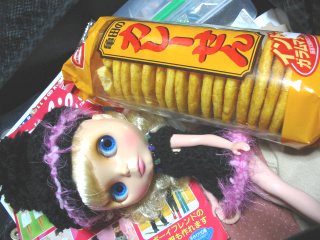 ガサガサッ ふらん:なによ〜ぅ。苦しい・・・ USA:旅の必需品。カレーせんべい。あとはおばあちゃんのおみやげ。 ふらん:USAちゃんばっかりおやつ買っちゃってズルイよ〜。 アタシもおやつ〜 肉まん〜 USA:肉まんはムリムリ。 ふらん:肉まん〜(大声) |