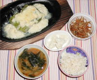・ロールキャベツのホワイトチーズ焼き ・きんぴらごぼう ・粉ふきイモ ・ワカメと玉ねぎの味噌汁 ゴボウメニューが続いたものの、正統派キンピラゴボウは今週お初。細目に切って大量に作る⇒残りは紙カップに小分けして冷凍=お弁当用。1度の調理で何回も食べていただきましょ♪ロールキャベツは手が空いているときに作って(コンソメスープで煮てあります)冷凍しておいたもの。こうするとトマトソースやホワイトソースで煮たり、今日のように焼くのもとっても手軽でGOODです。鉄板ステキでしょ?去年100円ショップで買った代物。結構使えるのでオススメ。収納は100円ショップのファイルなんかを入れるボックスに入れるといいよ。 |
