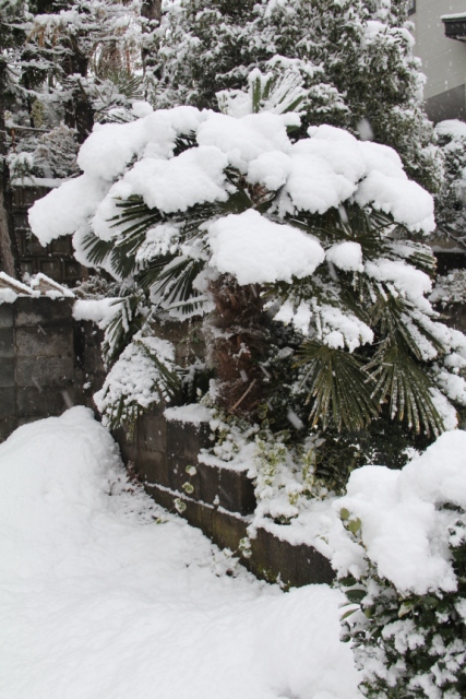雪が広げた葉の上に積もりましたが、もう持ちこたえられる限界のようです。