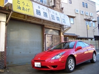 ハチロクには”藤原とうふ店”、看板には”藤原豆腐店”と書いてあります。