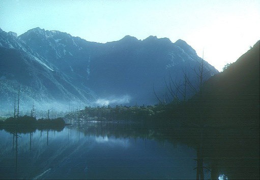 大正池の池畔から穂高の
