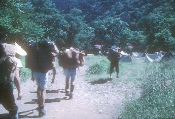 明神から1時間、「氷壁の宿」の看板のある徳沢園の前の草原