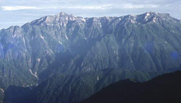 上 ; 独標より 笠ヶ岳、抜戸岳