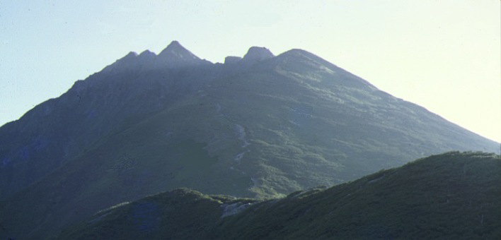 第2日 ;朝の陽光が射し始める頃、独標の登りにかかる。