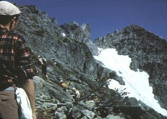 山頂はもうすぐだ。( 南稜上部のテント場近くで)