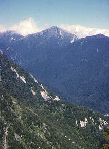 四峰又白側岩壁(中央日向部分とその右日陰部分)