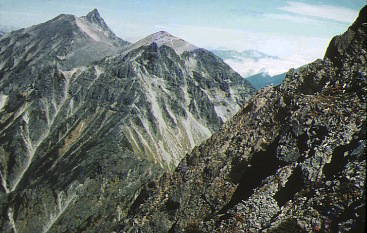 | 左 ;西穂・間ノ岳・天狗岳 の峰々。 右 ;