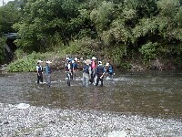 | 優勝した小林(弟)名人 | 本日のポイント(宮崎名人が胸まで入って根掛かりはずし) | 皆で川掃除 |