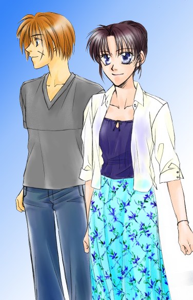 Satoruさんのリクエストによる私服の剣心と薫です。