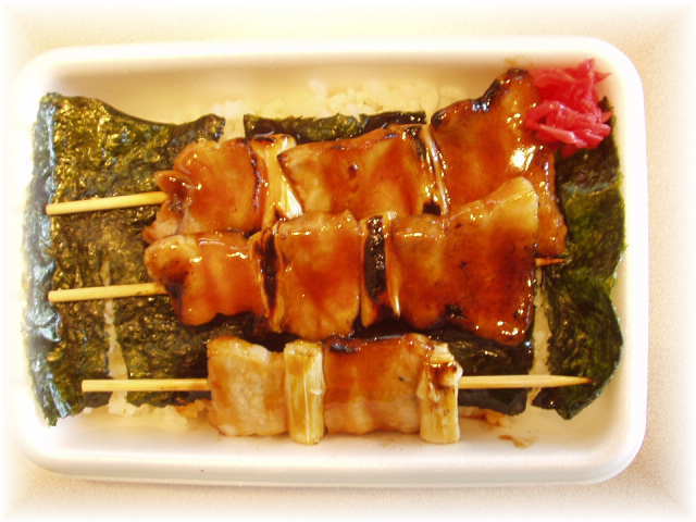 ご飯の上に海苔と焼き鳥が3本乗っているだけなのだが、これがバカウマ!