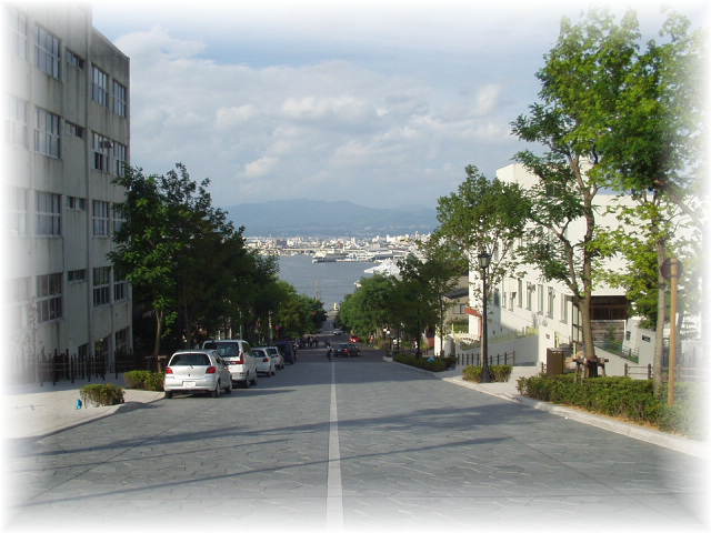 | CMでもよく使われる八幡坂。ちょっと古いけど、チャーミーグリーンとかね。 この坂のてっぺんには、北島三郎の出身高校があります。 |