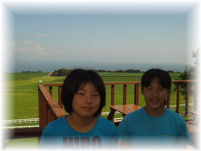 | 後ろに見えるのが、実験農場と内浦湾(噴火湾)です。天気がいいと最高ですよ。 |