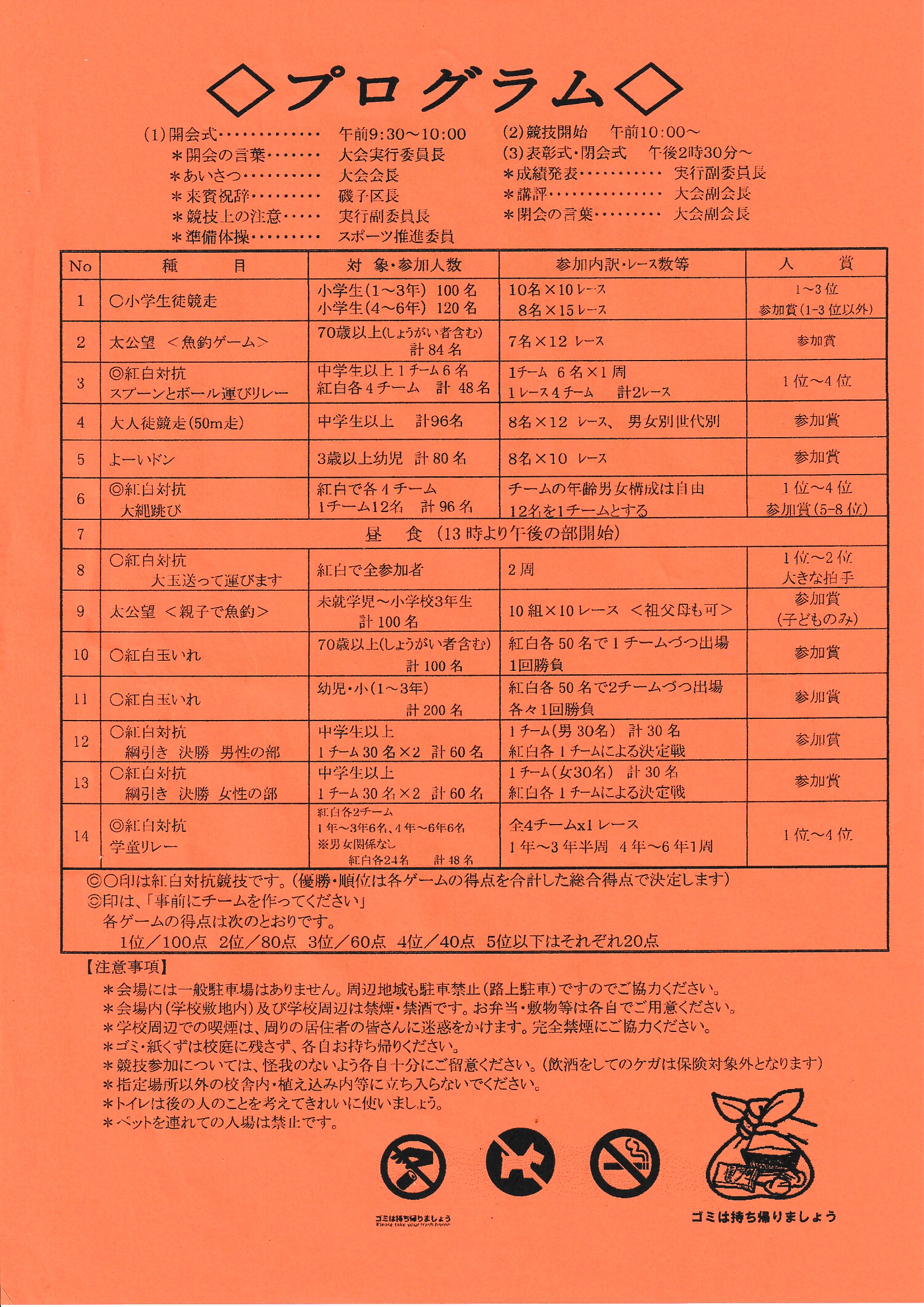 - 天候にも恵まれ、大盛況の中、無事終了いたしました。多くの方にご参加いただき、誠にありがとうございました。(2025/10/12) 皆様の頑張りにより、洋光台六丁目南自治会が所属した紅組が勝ちました。おめでとうございます。