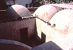 イスラーム建築の原理というのは 近代建築のそれに近い と何度も述べたように、これも 素材の正直な使い方による小ドーム屋根を連続させた、構造表現主義の 裸の近代建築である。わずかに ドーム下部のスキンチと 中庭に面する開口部の格子(ムシャラビーヤ)が 装飾の役割を果たしている のみである。このモスクは アフリカと中東における、新しい 地区モスクの手本となった。ファティが果たしたのは、荒廃した国土と 混乱した文明における、イスラームの建築伝統の 復興と近代化だったと言えよう。