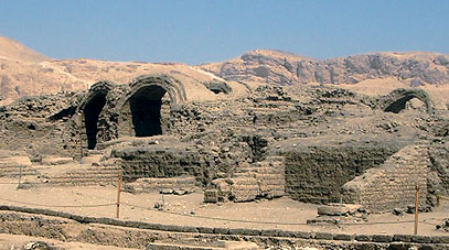 ファティは、下図の、ルクソールにある 紀元前の ラメセウムの、日乾しレンガの倉庫群は、おそらく 型枠なしで作られたであろう ことに気が付く。