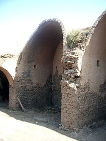 下図は、ファティが設計して、こうした方法で建てた、ニュー・グルナの、今は使われていない マーケットの建物である。半壊しているので、建設法が よくわかる。