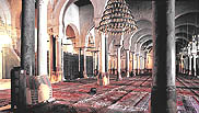 The worship room is an Arabic type hypostyle hall, columns of which were brought from Roman buildings. What gives this simple hypostyle hall a modulation is the central nave, capped with the before mentioned courtyard side small dome at the western end. It is wider and has a higher ceiling than the other aisles, emphasizing the praying direction toward Makka (Qibla). (In "Architecture of Islam" 2006) E-mail to: kamiya@t.email.ne.jp