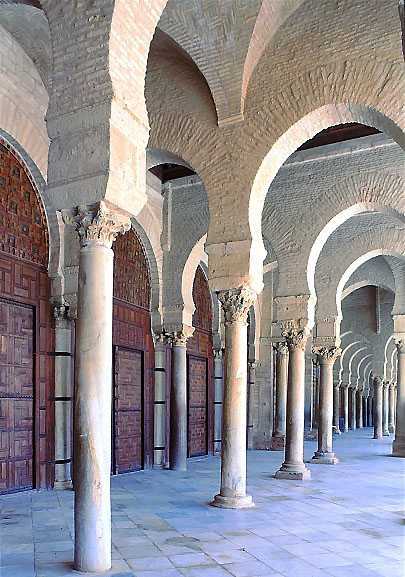The porticoes with horseshoe arches of the Great Mosque, Qairawan.