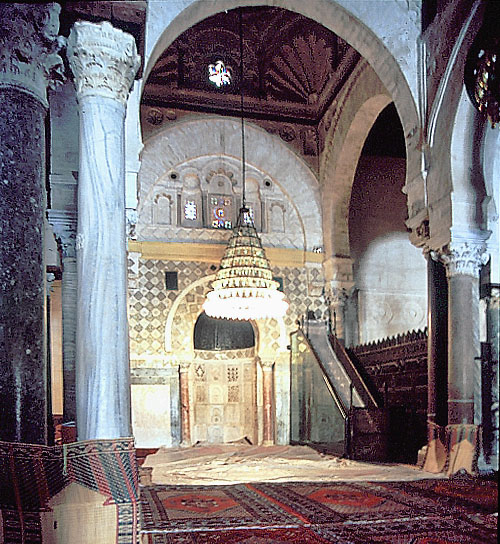 The Mihrab and Minbar from the 9th century in the Great Mosque, Qairawan.