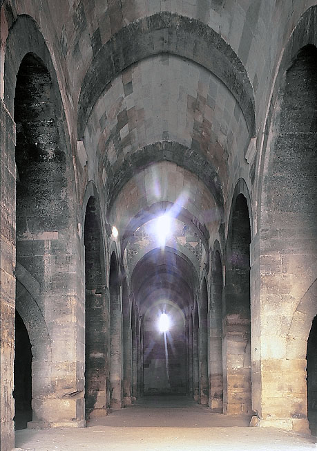 The central nave of the Caravanserai's hypostyle hall, with a high vaulted ceiling. It reminds us of Armenian churches' interior rather than an accommodation room.