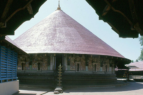 The Shiva Temple in Vaikom, Kerala, India Kerala temples contain three types: round, square and composite. The round one is surmounted with a large obtuse conical roof.