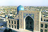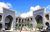 The largest example of this system is the Registan Square in Samarkand, where three Madrasas face each other around the square. As a result of its grand scale, it has formed the most magnificent cityscape in Central Asia.